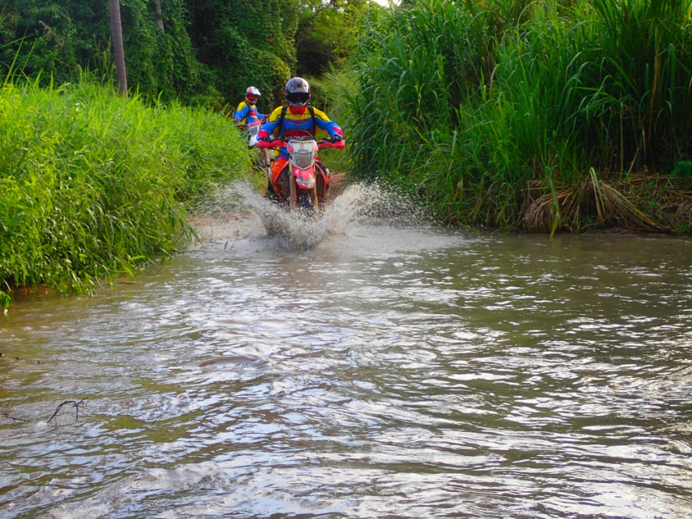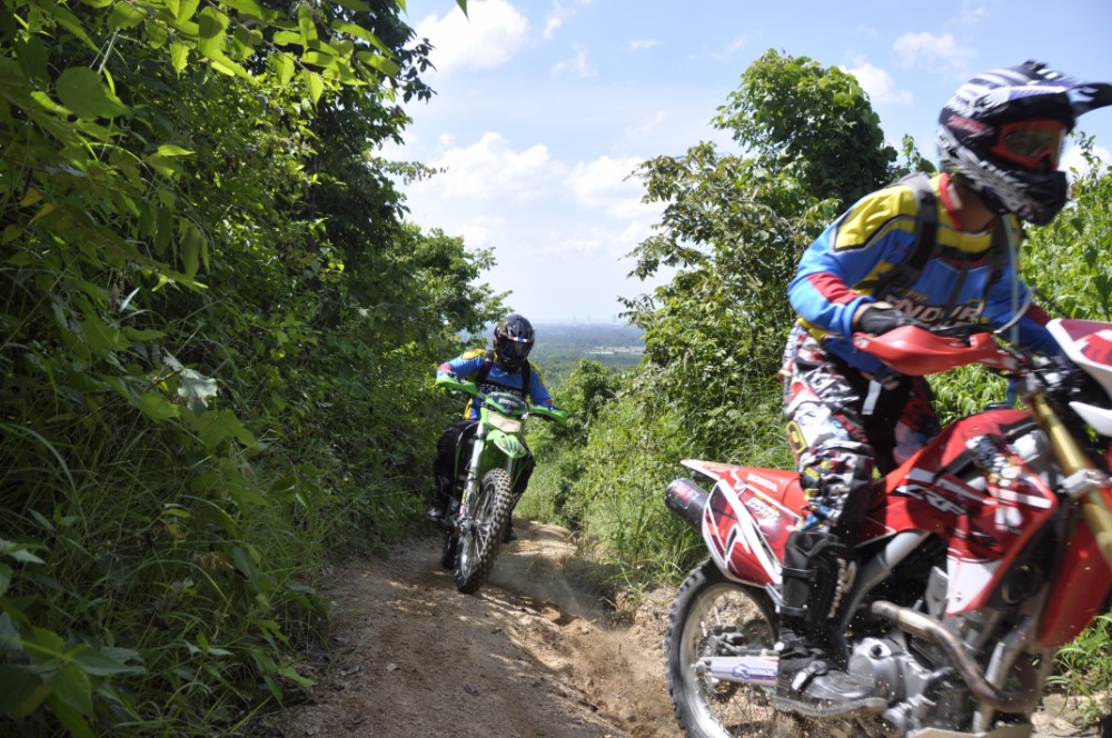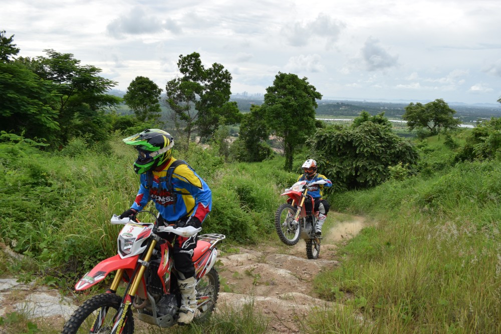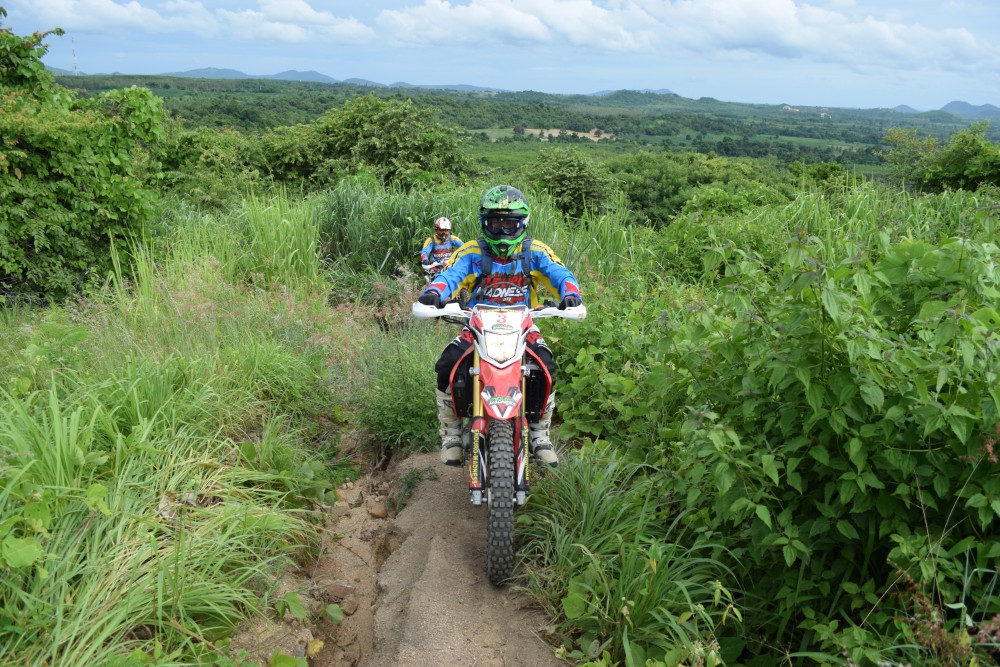 An Ultimate Enduro day tour is what an enduro dream is made of. Picture yourself riding through a full and lush tropical countryside where you will see weird and wonderful jungle creatures roaming free, think of the amazing colours, the sights and smells that are totally exclusive to this part of the world. Your senses will be working overtime. You will be encountering such wonderful hypnotic scenery as the tour negotiates open tracks, farmland, plantations containing coconut, rubber, eucalyptus and banana trees; Chad Nok Dam, forest and woodlands, jungle, streams, marshland and deep sandy trails, all of this in one unbelievably awesome action packed day. As we travel up the mountainsides to the summits the views are absolutely stunning as you look down on Pattaya, Jomtien, down to Bang Saray as well as out to sea to the beautiful Far Islands of the Pattaya Archipelago. As you take in this incredible lush tropical landscape it will be so hard to believe the hustle and bustle of Pattaya is so close by.
