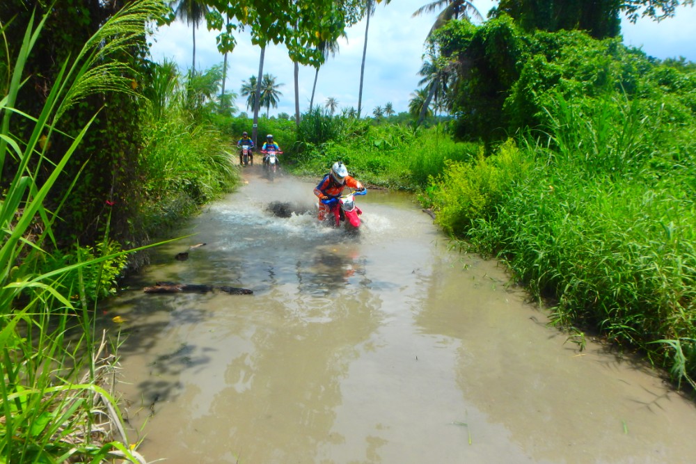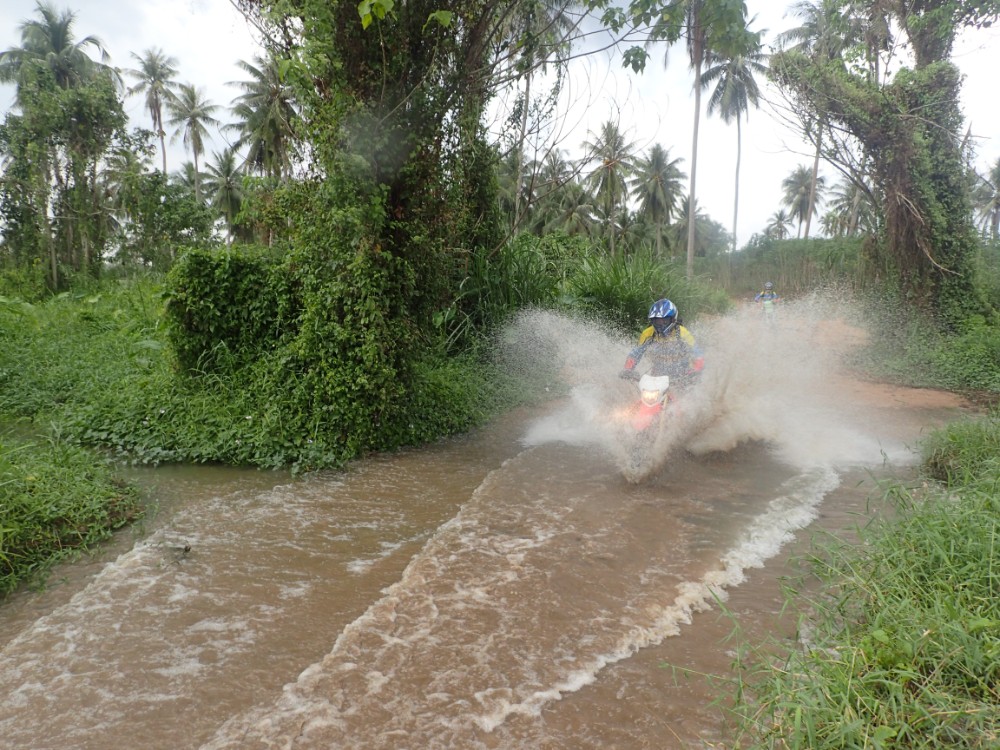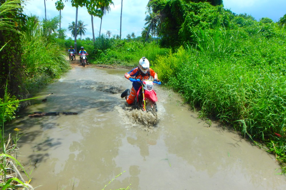 The first day of the tour allows you to experience our famous one day tour taking you through every terrain and multiple varieties of tracks and trials. The day will commence with a short but important safety briefing followed by a skill assessment on our practice track where our professional tour guides will take some time to assess the riders before placing riders into groups and allow the guides to plan a course for the days riding. The diversity of the first days riding is mind blowing taking you through an array of tracks and trails allowing you to experience many different terrains and environments such as single track jungle trails, deep sand tracks, rivers and other water obstacles, Chad Nok Dam and many of the fruit plantations that litter the countryside.